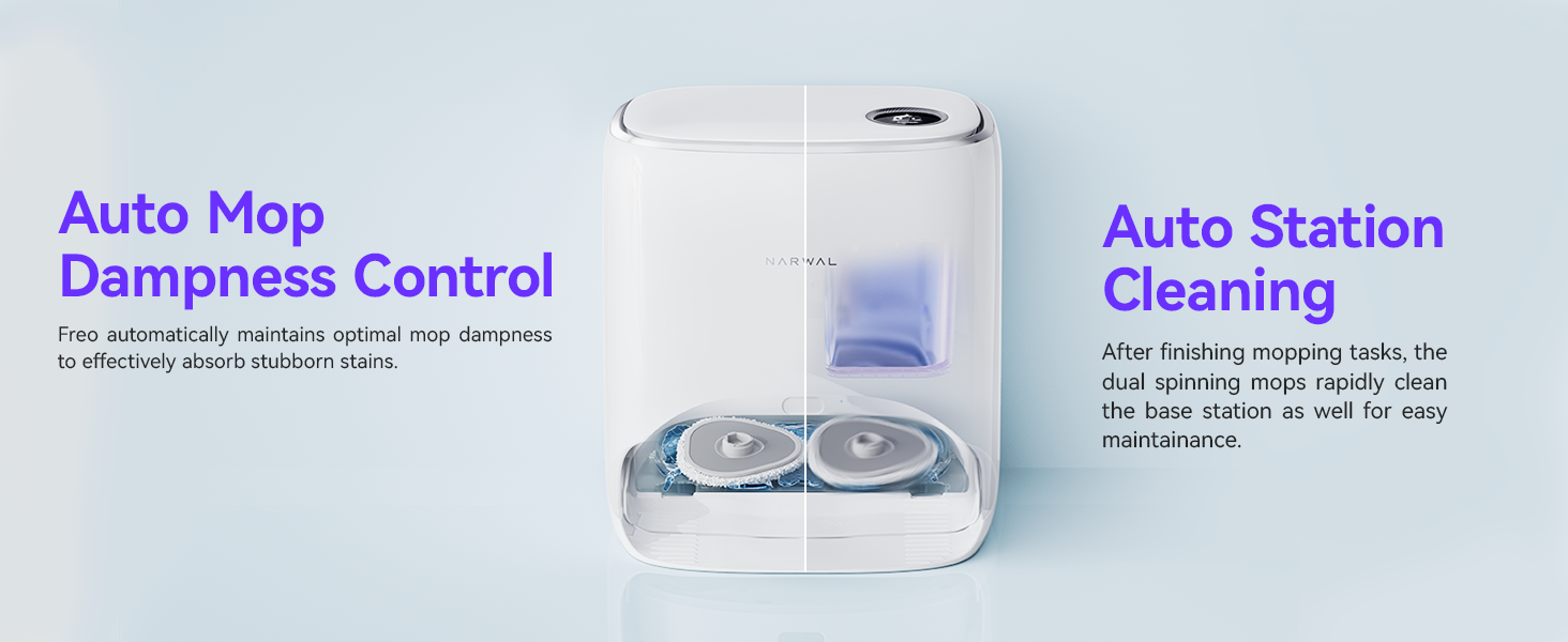 Narwal Freo inherited a mop self-cleaning that integrates vacuum & mop. Under Freo Mode, Narwal makes optimal cleaning decisions and actions, redefining the auto-cleaning logic in your life.