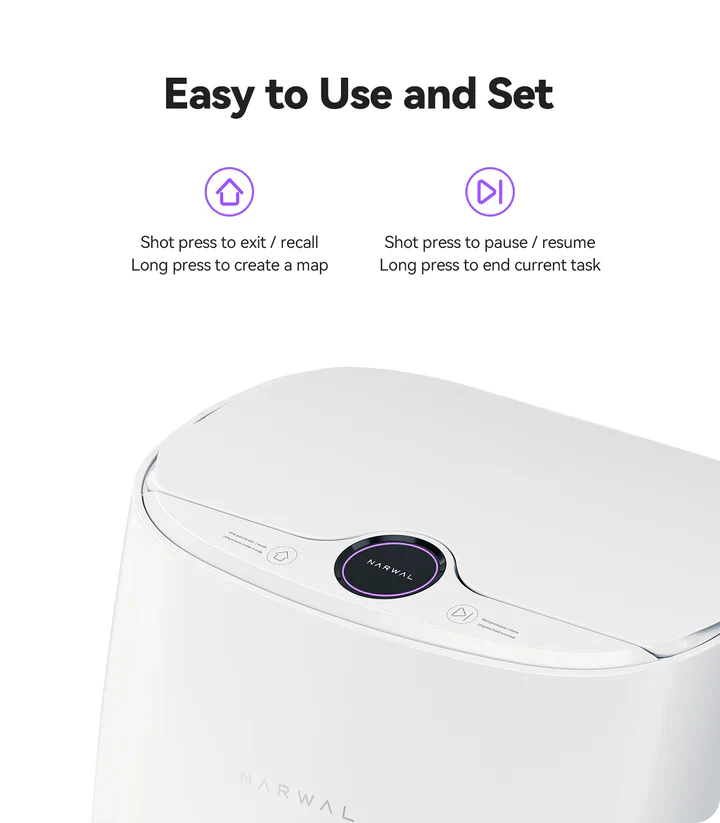 Besides the Narwal APP, the T10’s unique operating system has also been designed to be manually controllable from the base station. One click is all that's needed to make the T10 build a map, vacuum, mop, and return home.