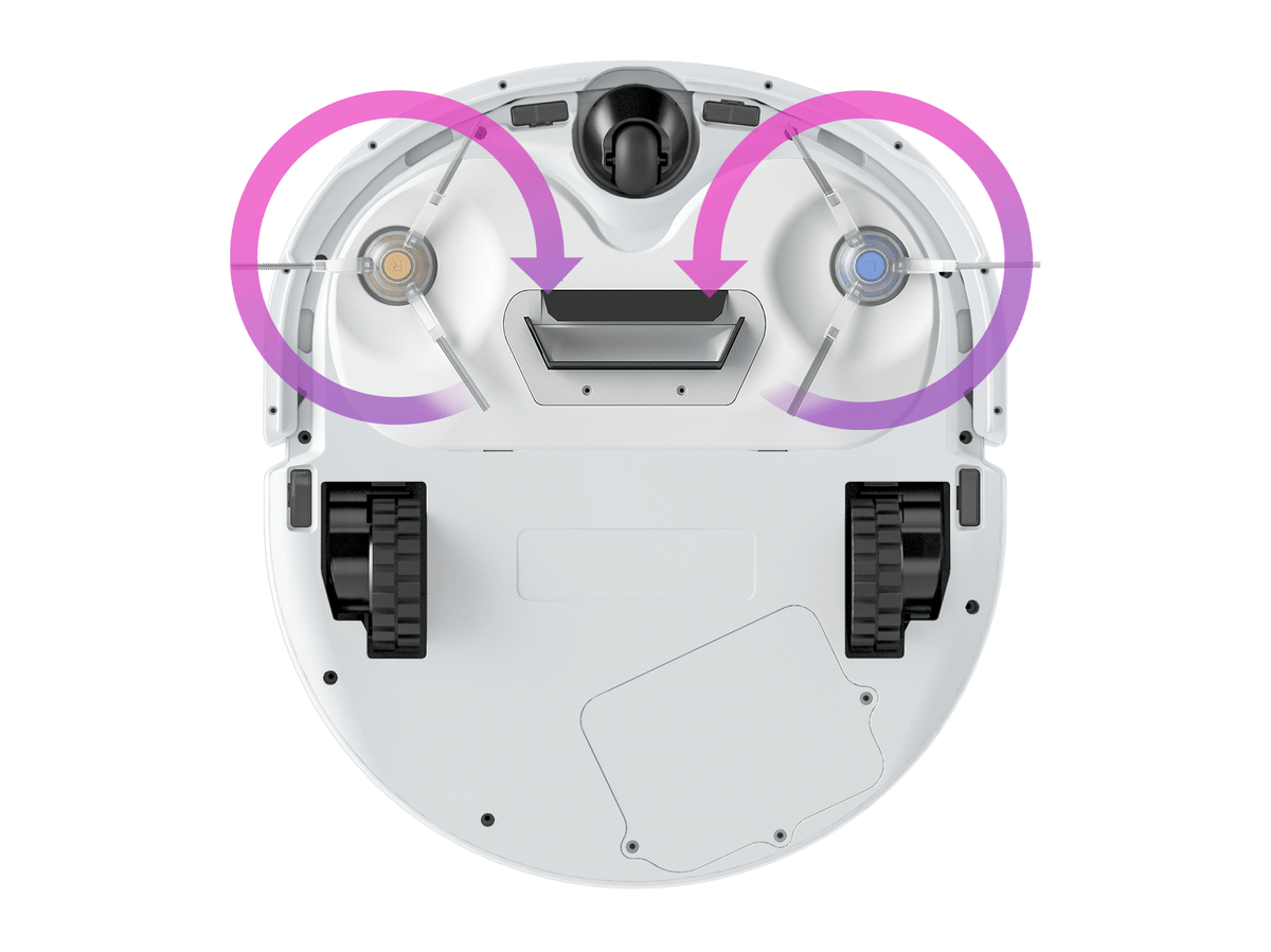 Dual side brushes sweep dirt, hair, and debris directly into the vacuum slot where the T10's filter efficiently traps dust, hair, and allergens - all without causing a racket.